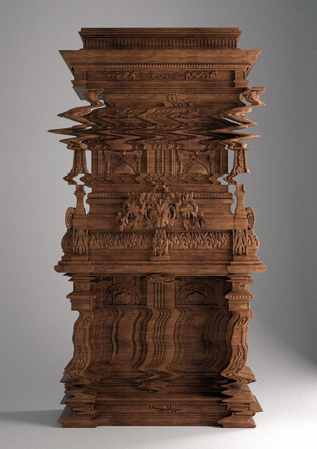Комод майстерною різьблення, нагадує комп'ютерний «глюк»