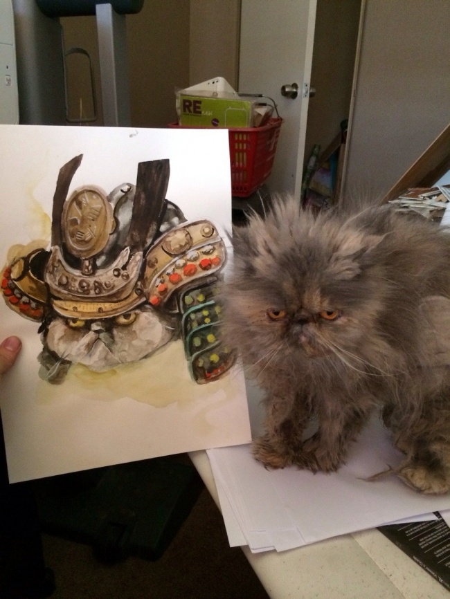 Я намалював іншу свою кішку в самурайському шоломі. Ця кішка явно образилася