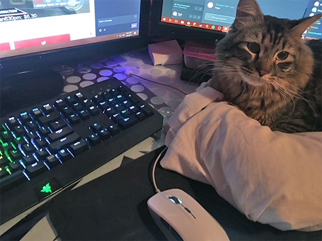 Мені довелося покласти на стіл подушку, щоб моя кішка не сідала на клавіатуру
