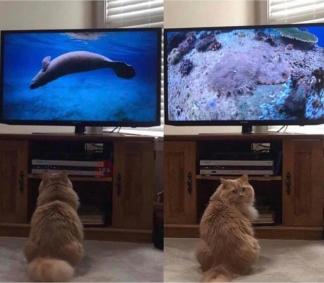 Мій кіт просто обожнює документалки про природу. І кожен раз він перевіряє, дивлюся я теж