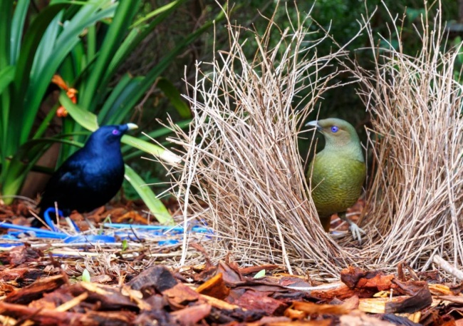 Ця пташка, мабуть, самий великий романтик. Для майбутньої коханої шалашник будує будиночок і старанно прикрашає різними блискучими і кольоровими штучками, які йому тільки вдасться знайти. Як справжній митець, шалашник метається в пошуках черепашок, ягід, тягне кинуті людьми яскраві предмети, воліючи насичений синій. Хіба зможе встояти жінка перед такими залицяннями?