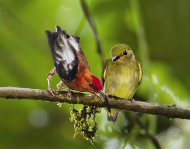 Щоб завоювати серце партнерки, у манакинов в хід йдуть всі вміння. Він демонструє їй всі таланти: ефектні кидок і стійку, неповторну поворот на 180°. І як головна зброя — фірмова «місячна хода» в дусі Майкла Джексона. Поки вражена партнерка приходить в себе від захвату, манакін виконує мелодію з допомогою клацань крилами. І робить це з величезною швидкістю — у 30 разів швидше звичайної відеозапису.
