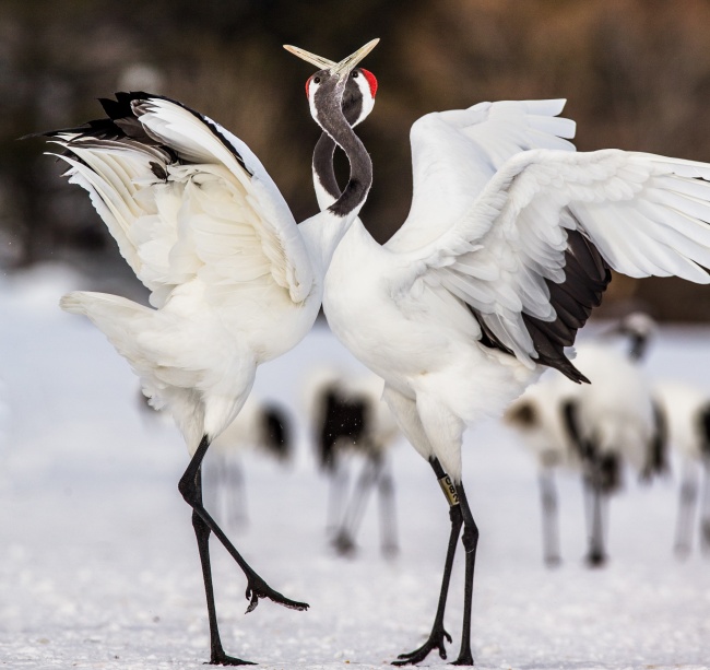 Залицяння журавлів — це цілий захоплюючий ритуал. Тут і підстрибування з невеликими перебіжками, і грюкання крилами з нахилами і пританцовываниями, і підкидання пучків трави вгору. На завершення відбулася пара «закріплює результат» спільним співом. І продовжує до тих пір, поки не починає співати в унісон. Мабуть, таке музичне єднання серед людей можна зустріти лише в диснеївських фільмах.
