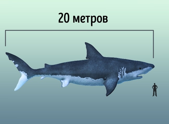 Мегалодоны були сверххищниками, що жили 3-28 млн років тому. Один тільки зуб мегалодона насилу вміщається в руках дорослої людини. Його довжина могла досягати 20 метрів, а вага доходив до 47 тонн. Сила укусу мегалодона була дорівнює 10 тоннам!