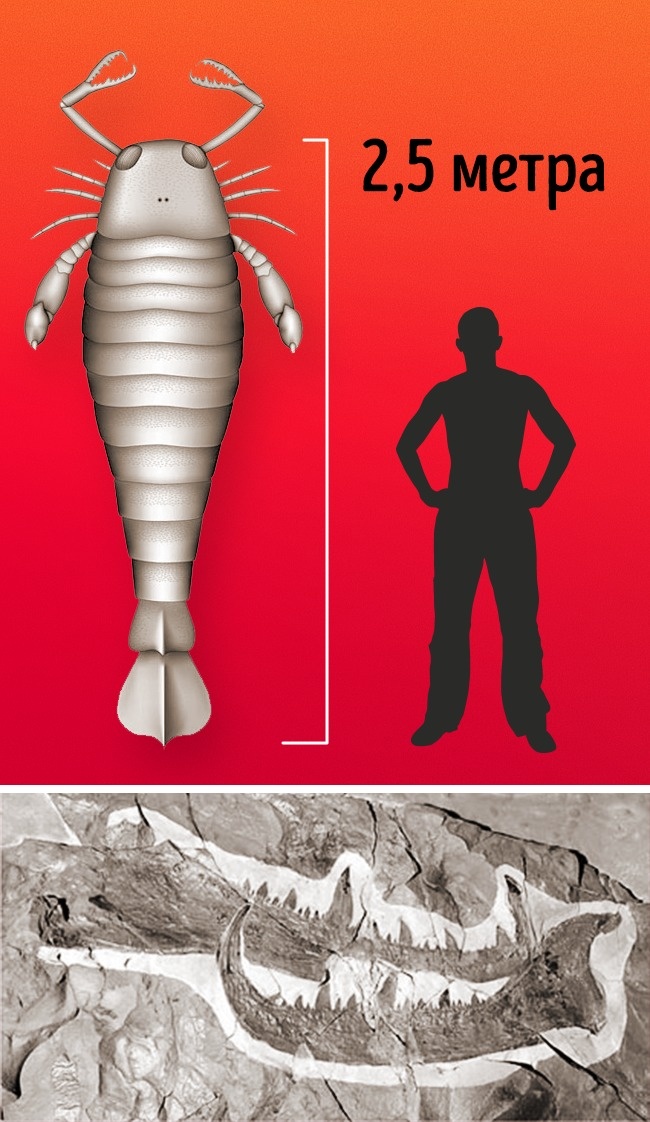 Ракоскорпион — найбільше відоме членистоноге. Вони могли виростати до 2,5 метрів, а існували 248-510 млн років тому.