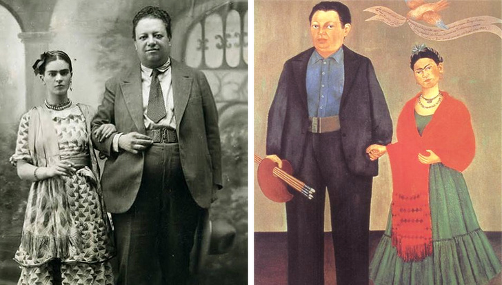 «У моєму житті було 2 аварії: одна — коли автобус врізався у трамвай, інша — це Дієго». З Дієго Ріверою Фріда познайомилася через кілька років після катастрофи. Молода художниця вирішила показати йому свої роботи, які маститий живописець оцінив досить високо. Між ними пробігла іскра. Закохана пара зіграла весілля в 1929 році. Їй було 22, йому — 43. Він був негарний, досить повний, але надзвичайно привабливий. Їх екстравагантну пару так і називали: «Слон і Голубка».