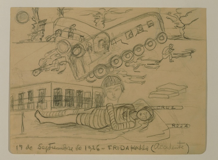 Фріда протягом декількох тижнів перебувала без свідомості, а прийшовши в себе, відразу ж попросила батька придбати приладдя для малювання, що і було зроблено. Він спорудив для неї унікальне пристосування для того, щоб їй було зручно писати лежачи, а також прямо над дочкою прикріпив велике дзеркало. Першим творінням художниці після трагедії став олівцевий начерк «Аварія». Вона не раз зізнавалася, що заняття живописом надавали їй сили, саме завдяки їм і своїм рідним вона і встала на ноги.