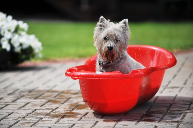 Якщо у вас собака, охолодити її можна, полив водою зі шланга або искупав у ванночці з прохолодною водою. Але при цьому потрібно пам'ятати про заходи безпеки: не варто поливати собаку сильним струменем або використовувати холодну воду. Якщо ви вирішили спокутувати вихованця, не опускайте його у воду з головою.