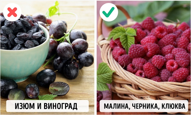 Виноград містить маловивчений токсин, який негативно впливає на нирки собаки. Зате їм цілком можна давати інші ягоди, як свіжі, так і у висушеному вигляді.