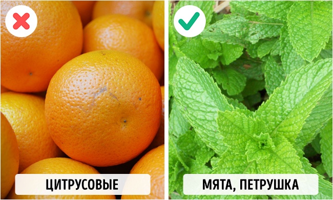 Цитрусові можуть викликати блювоту і діарею. А ось зелень, навпаки, сприяє роботі травної системи. Крім того, м'ята і петрушка ідеально підходять, щоб усунути неприємний запах з рота собаки.