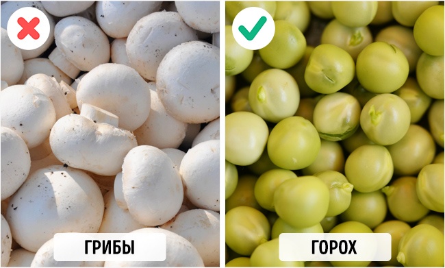 Гриби можуть містити небезпечні токсини, що впливають на організм тварини і викликають шок. У деяких випадках вживання грибів може закінчитися смертю. Краще замість них пригостити свого улюбленця зеленим горошком. Правда, як і інші бобові, давати його потрібно в невеликих кількостях — як частування.