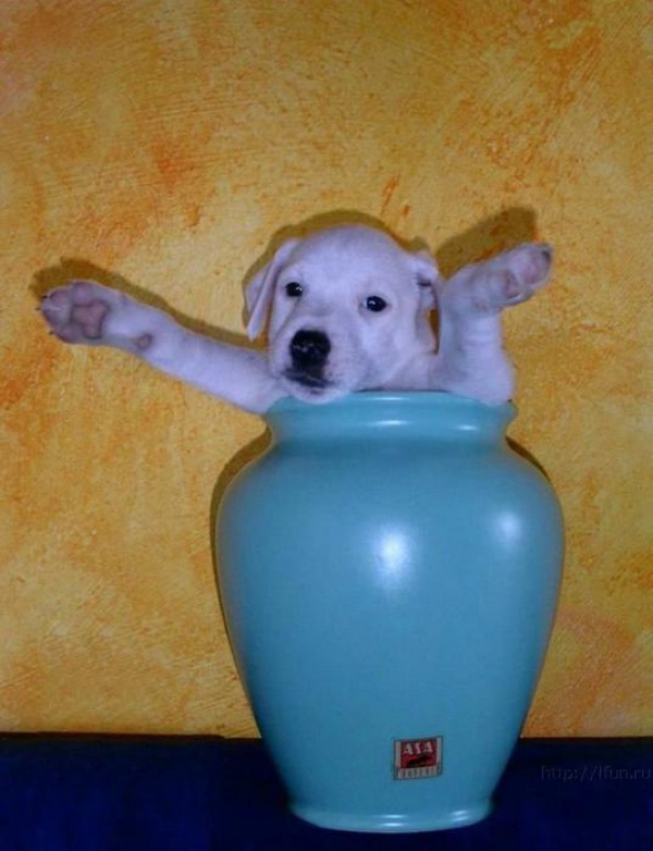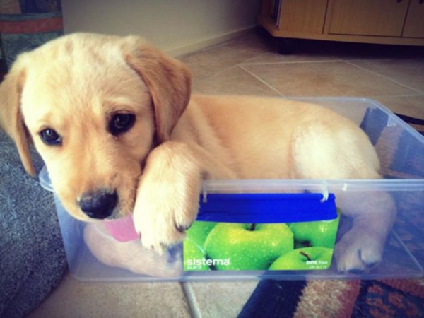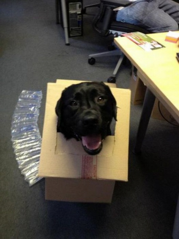 Всім відомо, що кішки дуже люблять забиратися і «вписуватися» в самі невідповідні простору. Як з'ясувалося, собаки обожнюють залазити в коробки, банки і кошика не менше кішок.