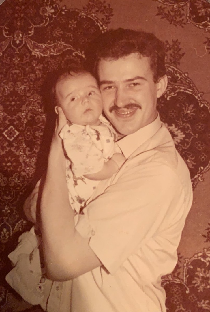 5. «Мама, тато і я на тлі килима під час життя в Чехії (на той момент Чехословаччини, місто Єсенік)»