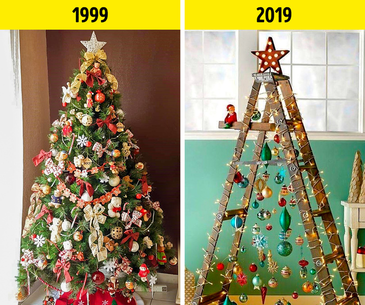 Але останнім часом в тренді економія простору. А ще екологічність. Ті, хто готовий витратитися, купують невелику живу ялинку в діжці. А ті, хто по максимуму прицільно планує новорічний бюджет, підключають фантазію і роблять ялинку з підручних засобів: гілок, гірлянд і навіть паперу. А то й саморобним вінком із хвойних лапок обмежуються.