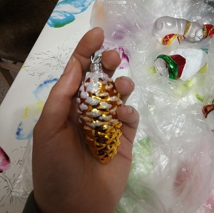 «Пам'ятаю, такі прикраси-шишечки ще кльові були, типу з морозцем, шорсткі, мені все було цікаво, що ж там всередині. Розбив, глянув — нічого. Отримав ременя»