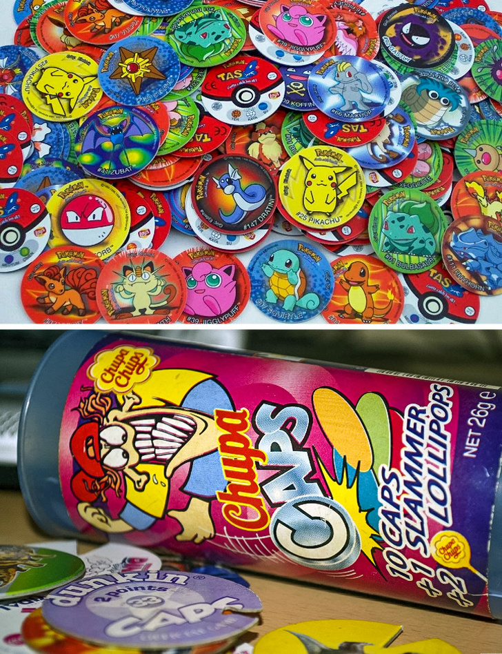 13. На зміну вкладкам і наліпок прийшли кэпсы, які йшли в комплекті з тими ж жуйками Dunkin, набором карток Pokemon і льодяниками Chupa Chups