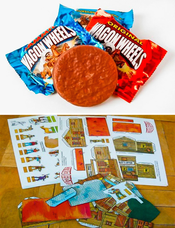 18. Печиво Wagon Wheels продавали в упаковках з принтами на картоні, з якого потім вирізали іграшки і будували цілі міста