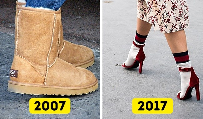 У 2007 році уггі були найпопулярнішою взуттям взимку. У 2017 році ми воліємо утеплятися яскравими шкарпетками.