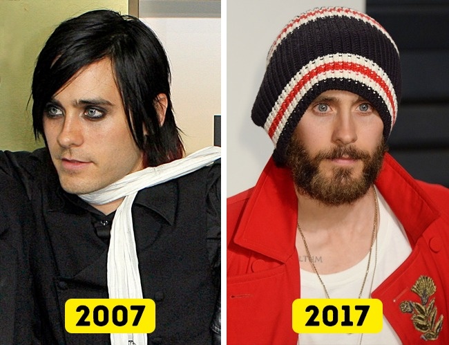 У 2007 році Джаред Літо розбивав жіночі серця містичним чином і несамовитими піснями. У 2017 році Джаред переодягнувся в casual і взагалі виглядає менш провокаційно.