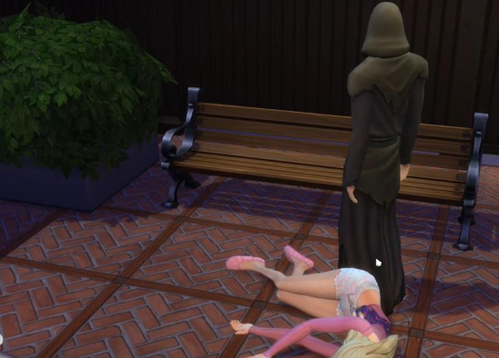 При появі Смерті, яка з'явилася за його улюбленими, він впадає в паніку. Тут сходи з'являється знову, і він спускається вниз — просто щоб пережити те ж, що і його рідні та близькі. Не жартуйте з моїм симом — або я доб'ю вас самим витонченим способом. © MrZegr / Pikabu