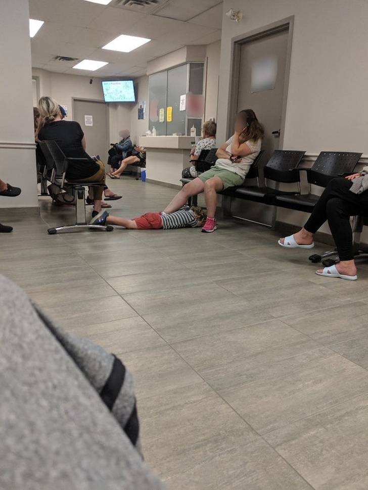 13. Поки мама каже по телефону, сидячи в черзі до лікаря, дитина кашляє без маски, валяючись на підлозі