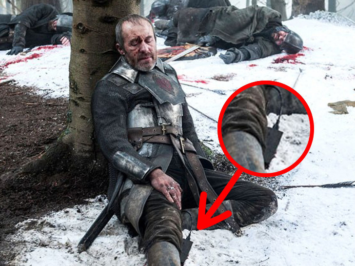 Один епізод серіалу — це сотні знімальних годин і десятки дублів. Так, наприклад, знамениту битву за Вінтерфелл в 8-му сезоні «Ігри престолів» знімали протягом аж 55 ночей. При таких масштабах не дивно, що іноді творча група все-таки допускає помилки в кадрі.