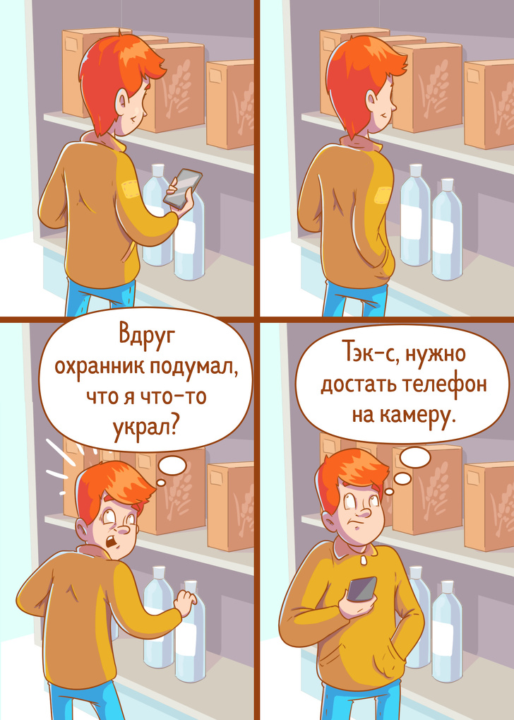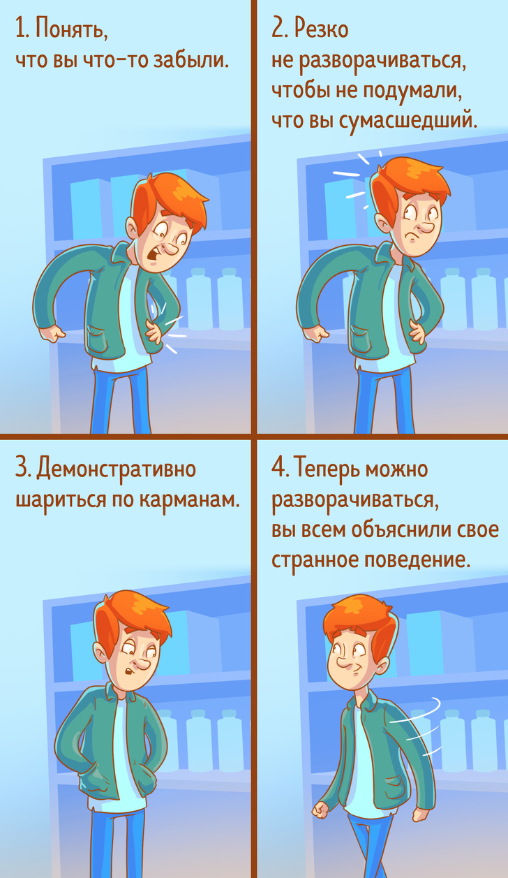 14. «Доведи всім своїм виглядом, що ти не злодій», — говорить мозок, коли проходиш через касу без покупок