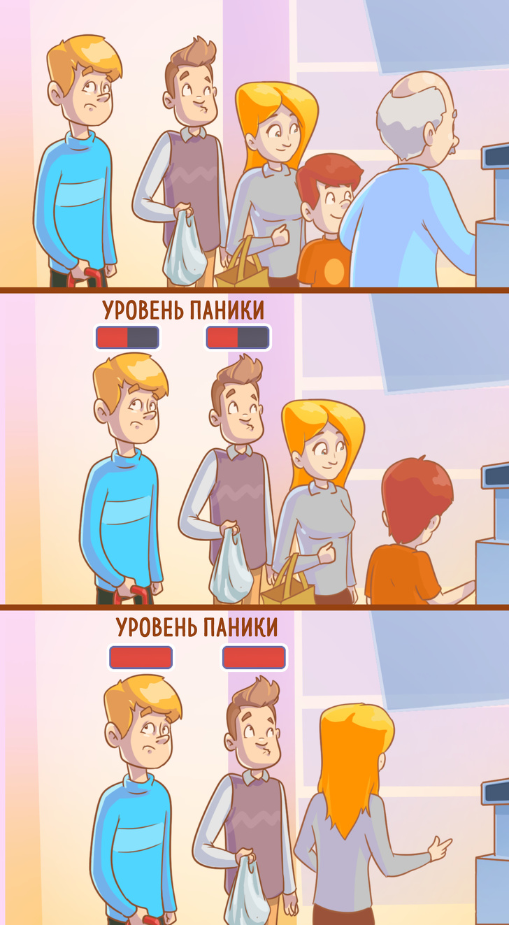 7. Коли встаєш в чергу на касу одночасно з іншим покупцем