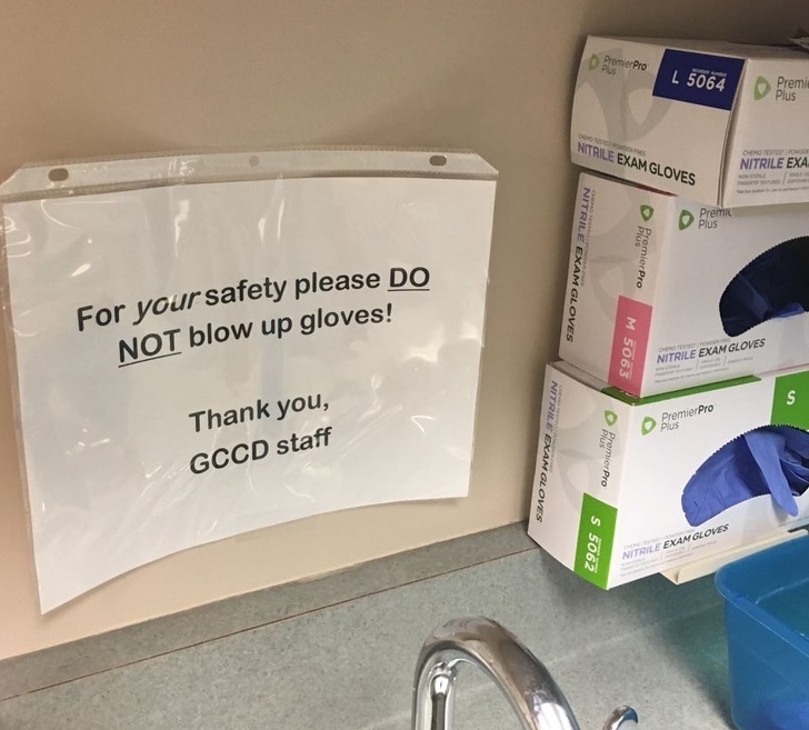 «Для вашої безпеки, будь ласка, не надувайте рукавички».
