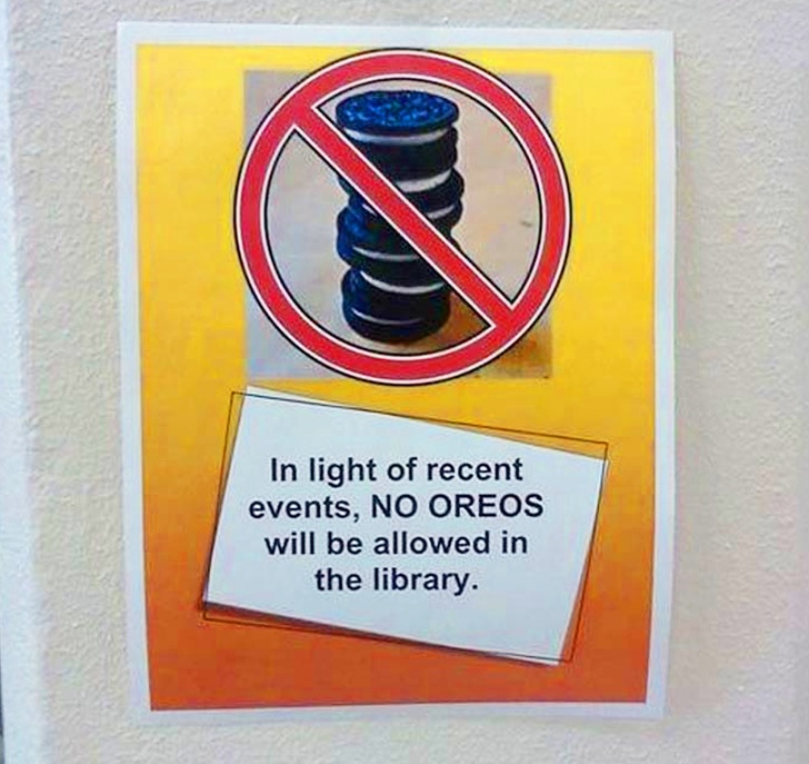 «У світлі недавніх подій приносити печиво „Орео“ в бібліотеку заборонено».