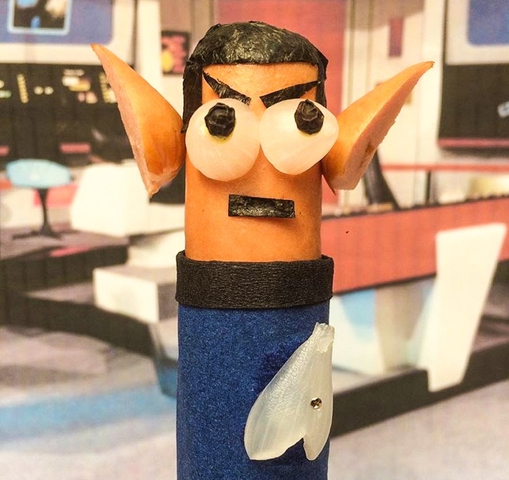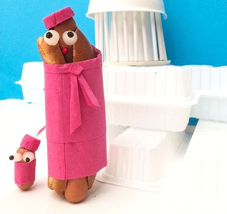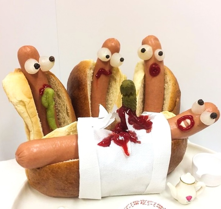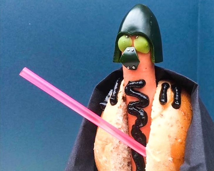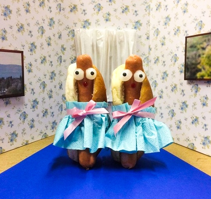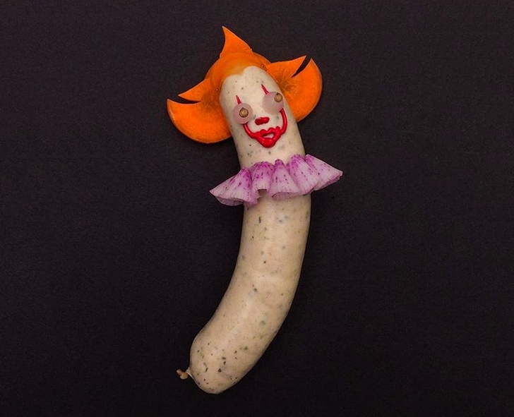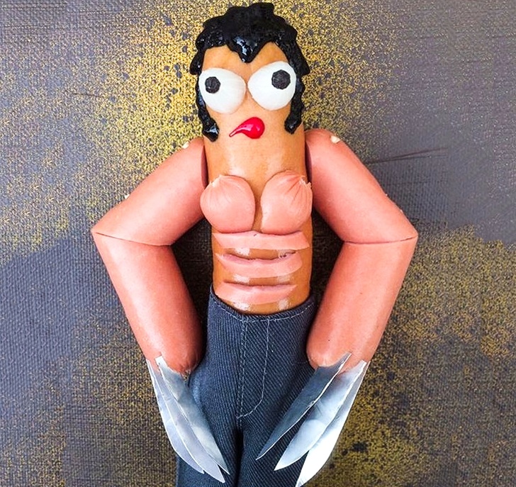 Бельгійський кухар-кондитер Ерік Верниуве давно захоплюється фуд-артом і створює різні фотопроекти з їжею. Трохи більше року тому основний музою для Еріка стала (хто б міг подумати) звичайна сосиска. За допомогою цієї королеви фастфуду Ерік відтворює кумедні портрети зірок і кіногероїв, зображує відомі картини та сцени з фільмів. І виходить дуже схоже, хоч і дуже комічно. Оцініть кінолиходіїв, зроблених з сосисок, — вони просто душки. А серйозні драматичні фільми раптом перетворилися в сюрреалістичні комедії.