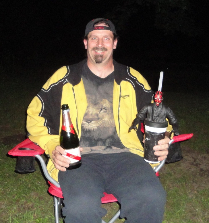 6. «Сьогодні мені 40, і я не взяв з собою звичайні келихи в поїздку, тому п'ю шампанське з цього стакану»