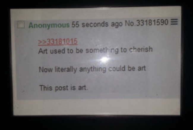 Роздруківка запису в інтернеті зі словами «Все може стати мистецтвом. Цей пост — мистецтво» була продана на eBay за $ 90,9 тис. всього через 36 годин після старту продажів.