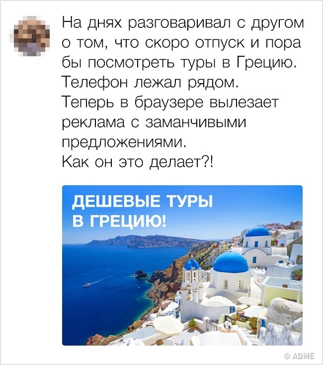 У сучасному світі дуже складно не стати параноїком — відеоспостереження в магазинах і на вулицях, всілякі гаджети, які наділили штучним інтелектом, і соціальні мережі, які вже здатні замінити шпигунські програми. Ні для кого не секрет, що смартфони збирають інформацію про свого власника і знають про нього майже всі — де працює, де живе, в які заклади ходить і які новини віддає перевагу, але іноді це лякає, чи не правда?