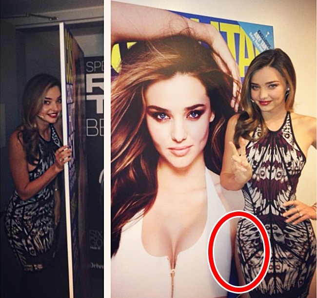 Супермодель Міранда Керр прекрасна і без фоторедакторів, але все ж дівчина вдається до хитрощів, щоб здаватися стрункішою, і трохи «зрушила» талію та стегна.
