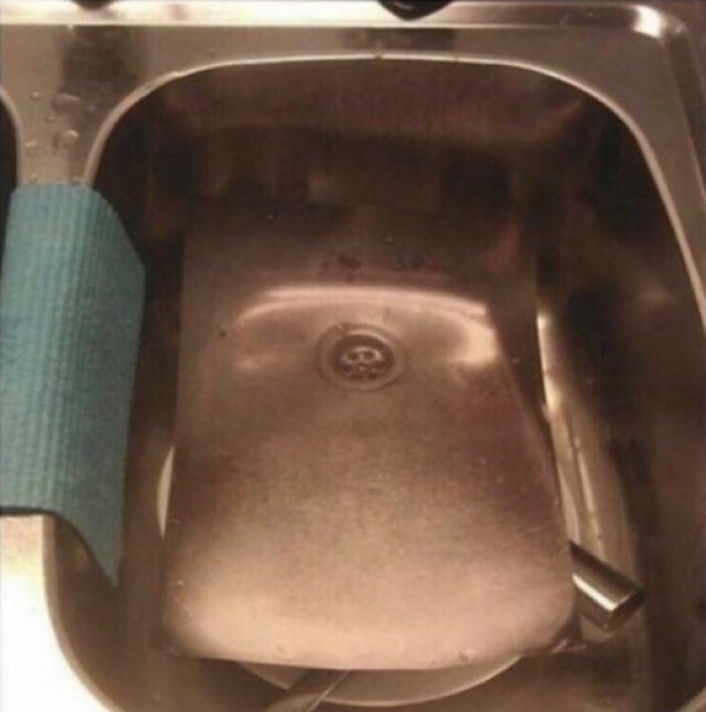 Якщо ви не хочете мити посуд, просто роздрукуйте фото чистої раковини і покладіть його на брудний посуд