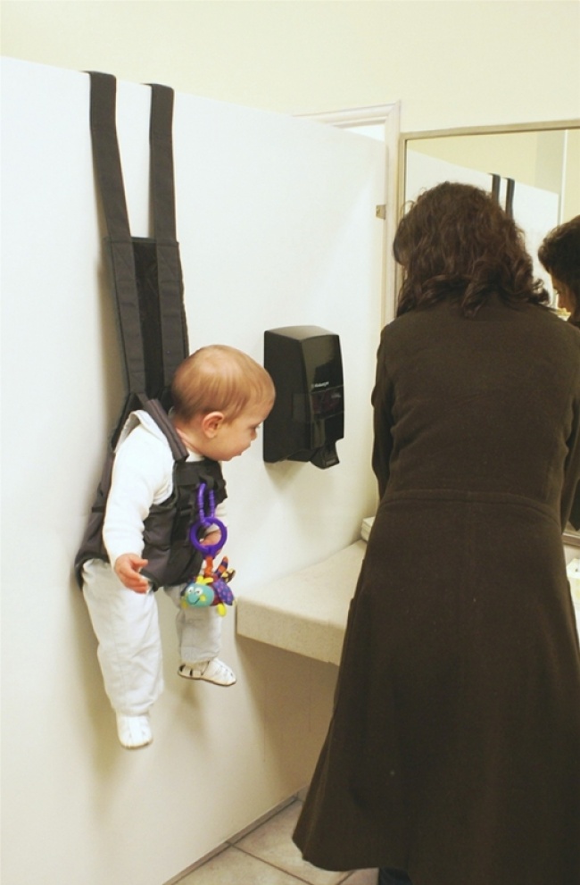 Слінг, звичайно, штука зручна, а ось як бути, якщо мамі знадобиться відвідати вбиральню? Та повісьте дитини на гачок, делов-то.