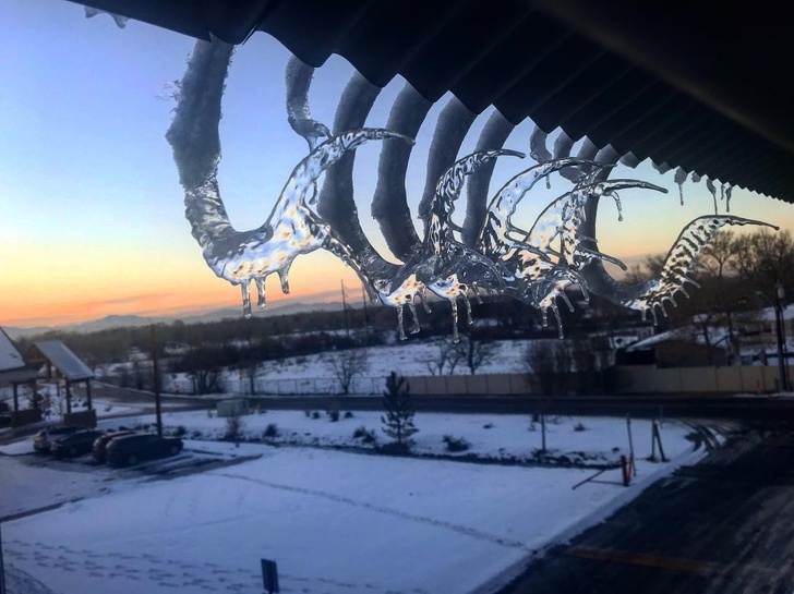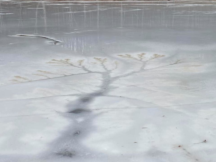 8. «Спочатку річка затопила це місце, потім замерзла, а коли вода відступила, то залишила ці ширяють крижані шари на деревах»