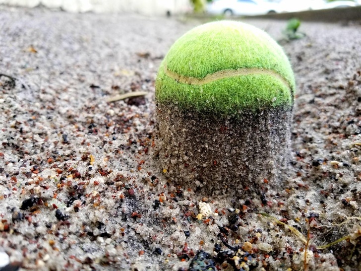 6. «Дощ розмив пісок навколо тенісного м'ячика та „підняв“ його»
