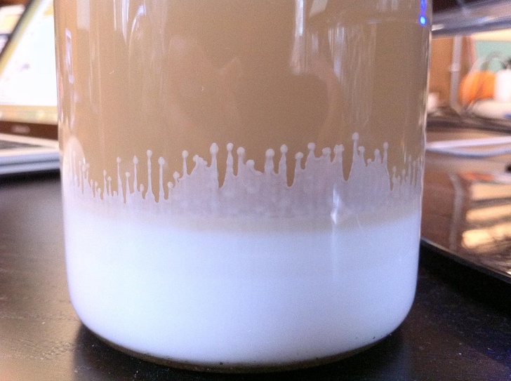 3. Це ефект Маранґоні. Тут він виник із-за різниці поверхневого натягу молока і гарячого чаю, який у нього налили