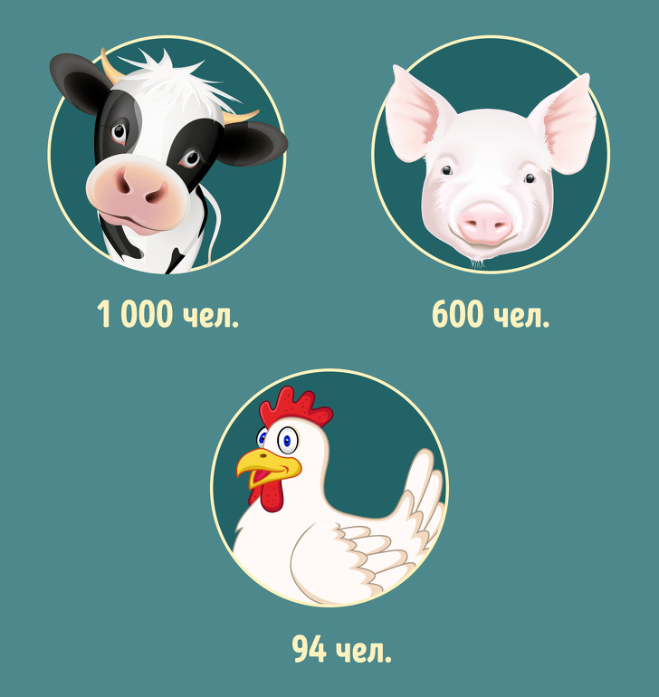Давайте подивимося, скільки нестаріючих людей знадобилося б, щоб з'їсти всіх корів, свиней і курей, які живуть на Землі в даний момент