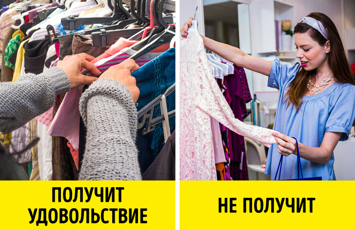 Той же прийом спрацьовує і в магазинах розпродажів. Щоб знайти хороший товар за дійсно невисокою ціною, нам доводиться докласти зусиль, оскільки найбільш вигідні пропозиції розташовані у віддалених від входу місцях або серед іншого одягу зі звичайною ціною. Знайшовши нарешті ту саму річ, ми відчуваємо набагато більшу радість від покупки, ніж якщо б джинси або кофта дісталися без зусиль. Так продавці створюють емоційну прив'язку, змушуючи нас повернутися в магазин.