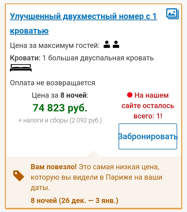 Найбільш яскравий приклад застосування цього принципу в онлайн-продажі демонструють портали, що пропонують бронювання номерів у готелях. Коли ми вибираємо той або інший номер, помічаємо яскраві написи, що повідомляють про кількість людей, які переглядають його одночасно з нами, або попередження про те, що майже всі такі номери вже кимось викуплені. Так у нас пробуджують прагнення стати володарем затребуваного і дефіцитного товару.