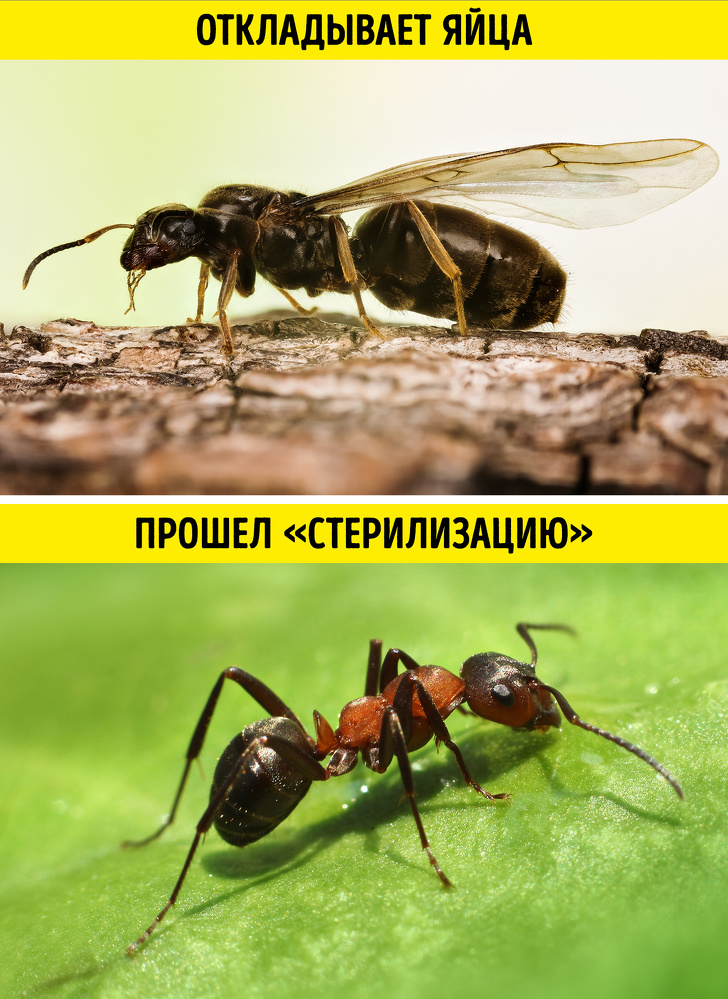 А такі соціальні комахи, як бджоли і мурахи, роблять пасивну стерилізацію, не завдаючи ніякої шкоди членів своїх колективів. З допомогою феромона цариця дає сигнал своїм робітникам, що продовжувати рід буде тільки вона. В результаті дії цих речовин у багатьох робочих бджіл або мурах навіть не розвиваються яєчники, вони не можуть відкладати яйця.