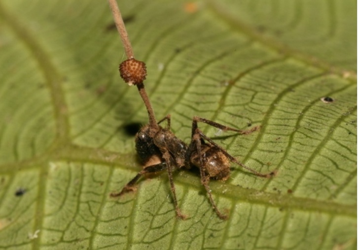 Не менш підступний гриб кордицепс. Він проникає в тіло мурашки і починає контролювати його м'язи. Деякий час мураха веде себе як зазвичай, а потім залишає мурашник в пошуках вологого місця, затискає лист живого рослини в щелепах і так висить, поки не гине. А безжалісний грибок пускає з його голови своє плодове тіло і готується випустити свої суперечки, щоб заразити нових мурах.