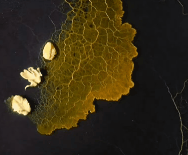 Одрі Дюссутур з Університету Поля Сабатье помістила вже знайому нам жовту слизову цвіль в центр кола, навколо якого розклала, як по циферблату, 11 шматочків різної їжі. Скільки б разів Одрі ні повторювала досвід, блоб кожен раз вибирав їжу, що містить 2/3 1/3 білків і вуглеводів.
