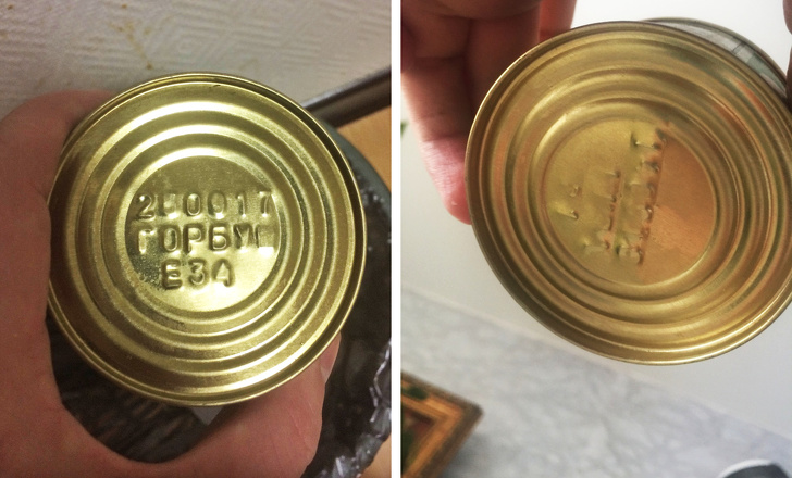 Якщо ви обираєте червону ікру в жерстяній банці, в першу чергу придивіться до цифр, які надруковані на кришці. Вони повинні бути опуклими, а не відмітинами. Так можна визначити якісний заводський продукт за лічені секунди.