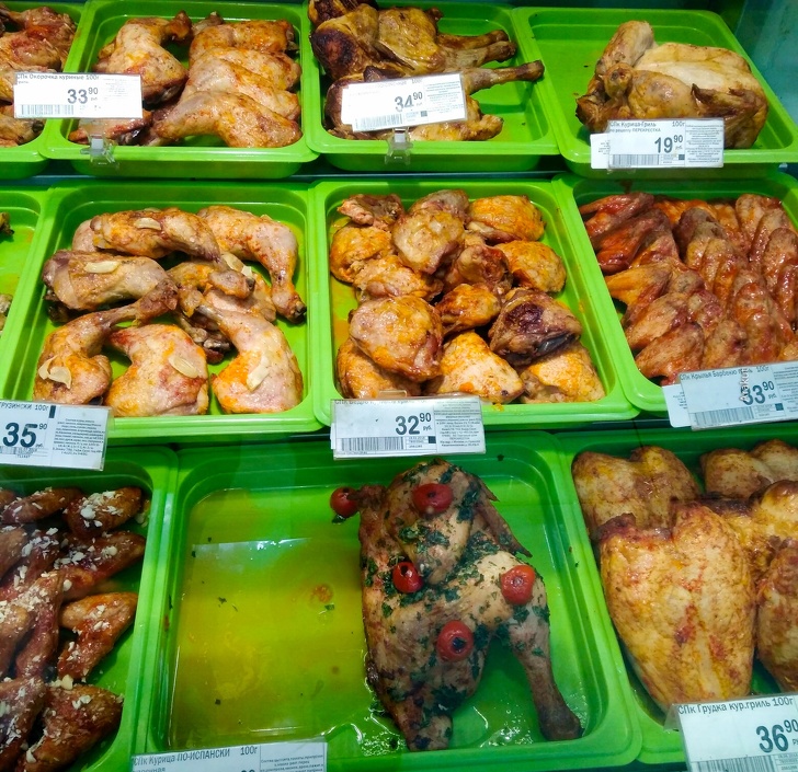 Поряд із звичними нам блідо-блакитними бройлерам у супермаркетах можна побачити тушки, чиє м'ясо має характерний жовтий відтінок. Нічого страшного в цьому немає: подібний колір пов'язаний з особливостями технології вирощування. Птахів годують зерном та кукурудзою, остання і додає м'ясу відповідний відтінок.