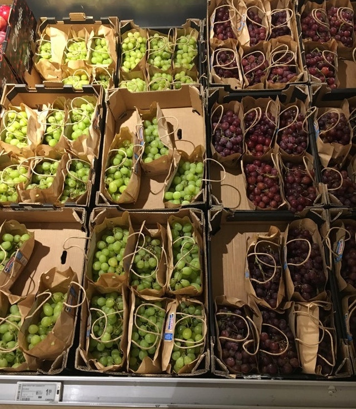 12. «Виноград в нашому супермаркеті продається в маленьких паперових пакетах замість пластикових»