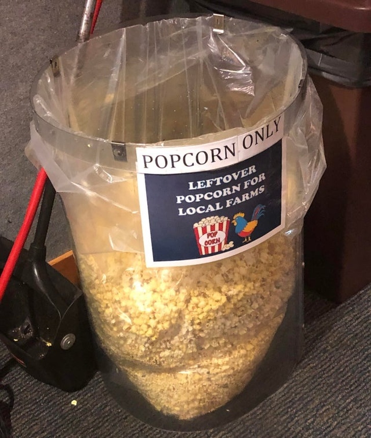 13. Кінотеатр збирає залишки попкорну і відправляє на місцеві ферми на корм тваринам